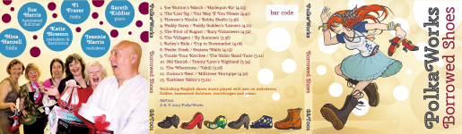 Polkaworks are an english ceilidh band with a very light and uplifting feel to their music, and a love of fabulous shoes so I tried to capture that bubbly festival feeling in the artwork.